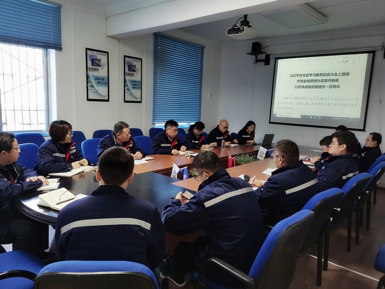 陈剑锋在会上强调,广大党员干部要切实提高政治站位、统一思想认识,充分认识开展党史学习教育的重大意义;各党支部要加强组织领导,牢牢把握正确导向,依托“三会一课”制度创新学习的方式方法,确保党史学习教育接地气、见实效。全体党员干部要严格遵守党的纪律,提高党性修养,自觉践行党的初心使命;要全面深入用心学,联系实际工作学,结合岗位职责学,做到学史明理、学史增信、学史崇德、学史力行,以更高姿态投身公司发展新征程。